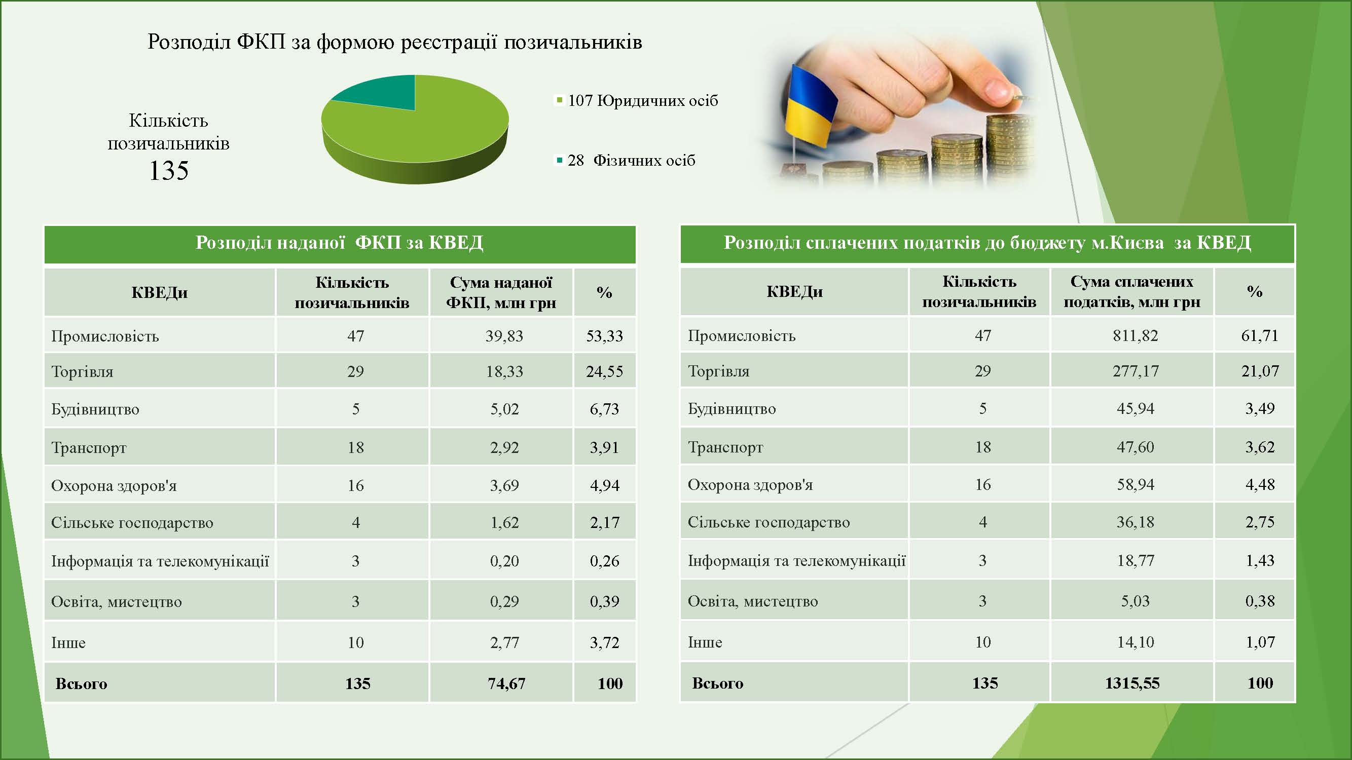Підприємці міста Києва можуть отримувати фінансування на реалізацію своїх інвестиційних проєктів на наступних умовах: