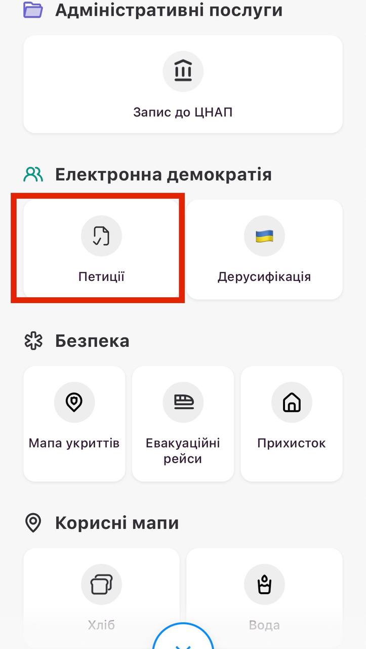 Тепер підписати петицію можна буде не тільки на сайті, а й у міському застосунку.